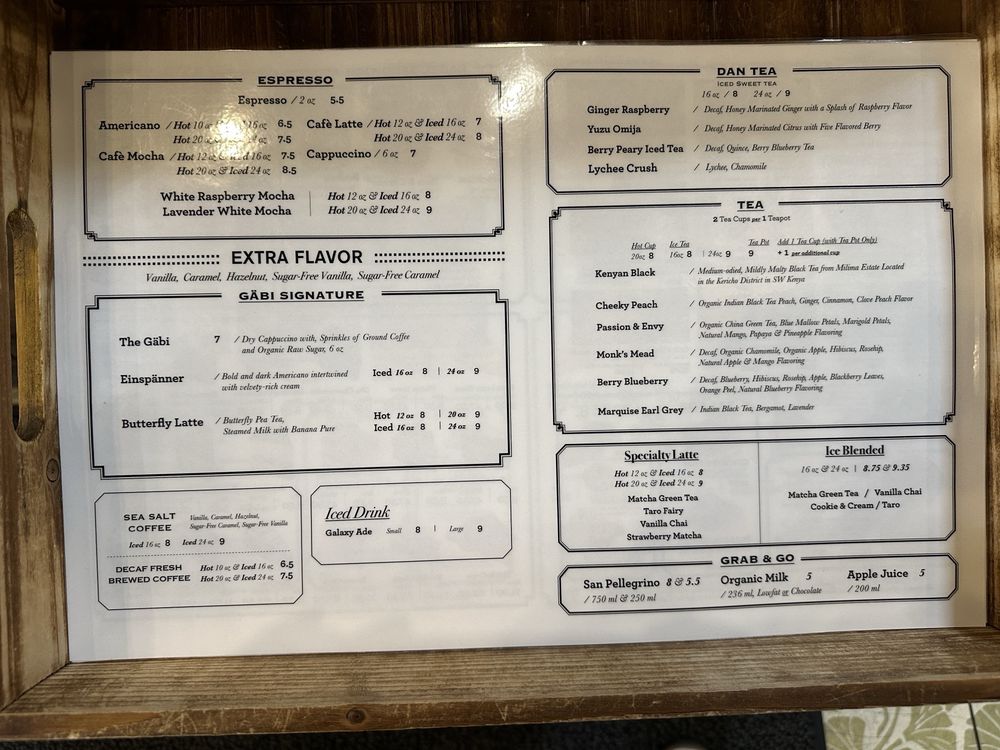 Gäbi Coffee & Bakery, located in Las Vegas, offers a cozy and eclectic atmosphere with unique aesthetics. The menu features a variety of espresso drinks, including the signature Gbi and Butterfly Latte. Fresh brewed coffee options, like Sea Salt Coffee, are also available. Customers rave about the delicious desserts and sandwiches, with standout items like the earl grey cake and ham/grilled cheese sandwich. The cafe offers a range of seating options, from wooden bleachers to a bird cage, making it a great spot for studying or meeting friends. Service is top-notch, although it can get a bit loud during busy times. Overall, Gäbi Coffee & Bakery provides a memorable experience with great food, ambiance, and friendly staff. Don't miss out on this hidden gem in Las Vegas!